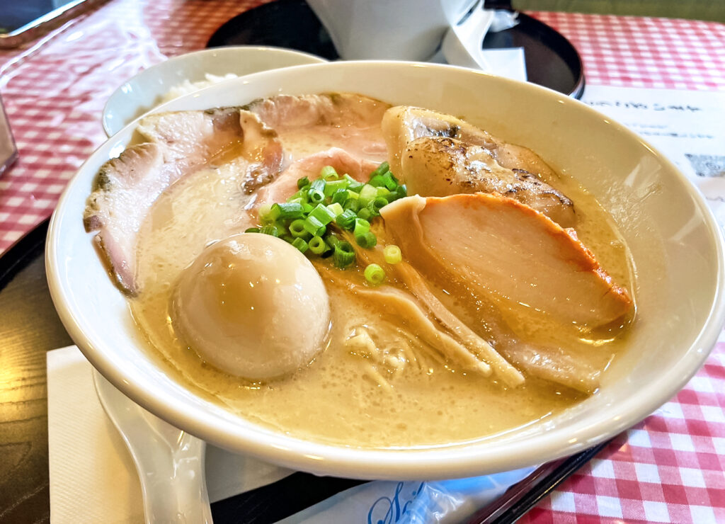 気になるスープは、豚・鶏・魚介・豆乳で構成されクリーミーでコクのある仕上がり。麺はパスタに近い食感がありスープとの相性も良いです。