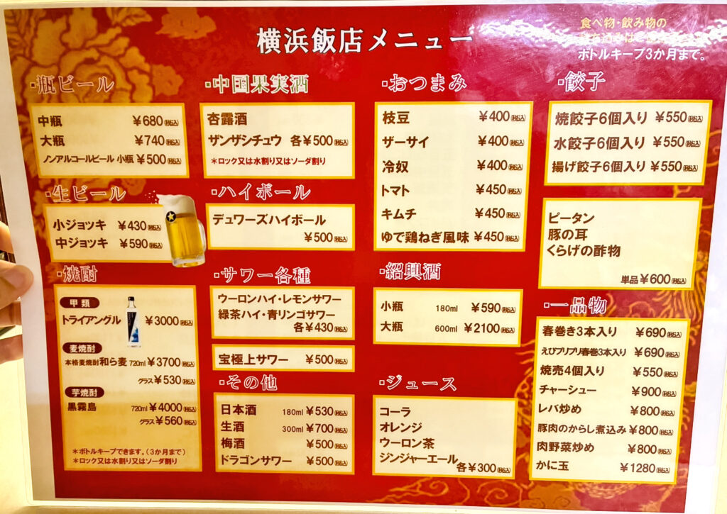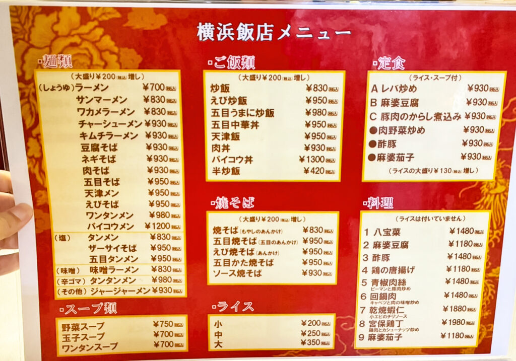 横浜飯店のメニュー