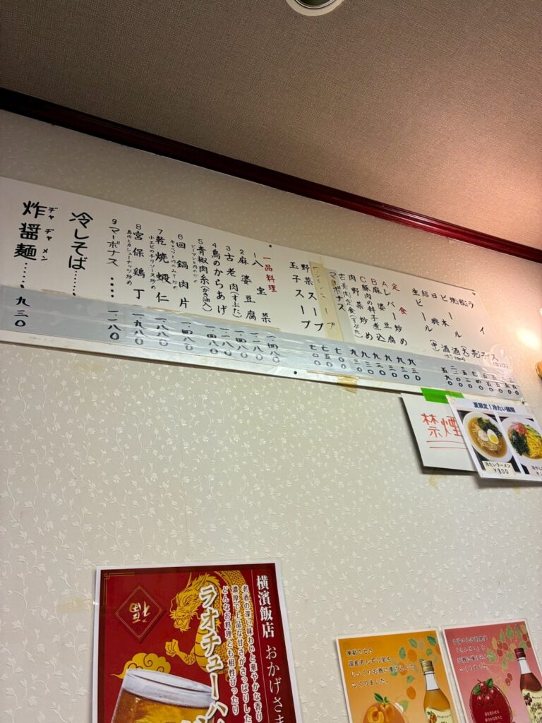 町中華なお店に入るとメニューを探す時は脊髄反射に壁の上部に目が行きます。